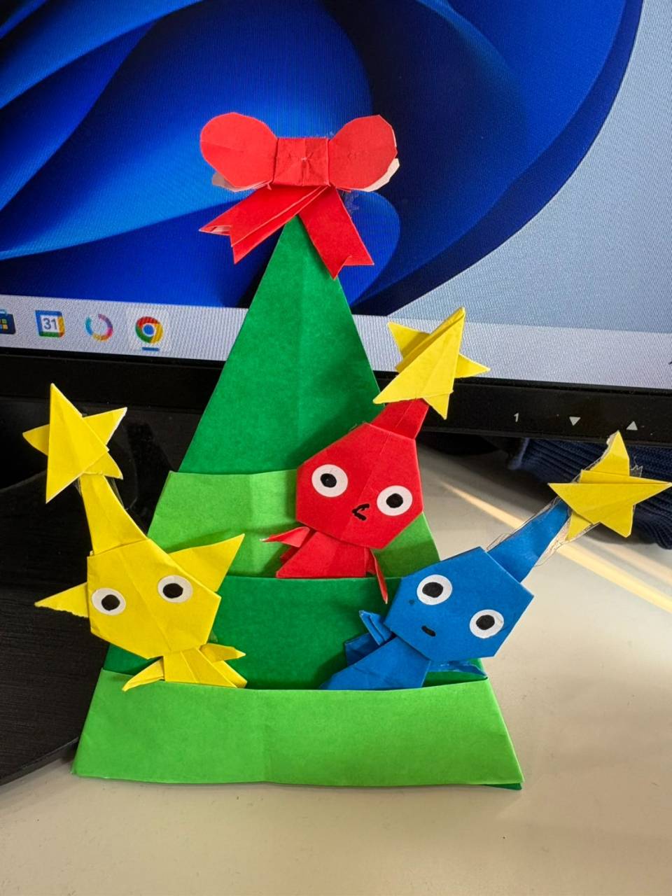 いただいた折り紙は、 スタッフみんなで大切にディスプレイに飾らせていただきました。 可愛い折り紙のおかげで、 ゆうきホーム株式会社の事務所は、 とてもあたたかく、可愛らしいクリスマス空間になりました♪