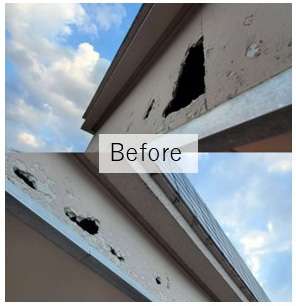 とくに、軒天に大きく開いた穴は、今後さらに雨風によって拡大する恐れがあり、早急な対応が必要でした。