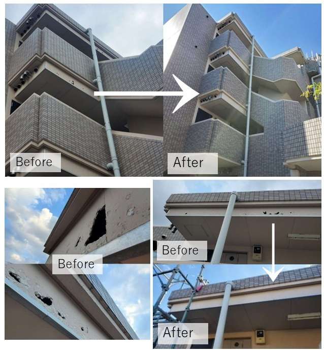 台風によって損傷したマンションの外壁補修工事の実例をご紹介いたします。