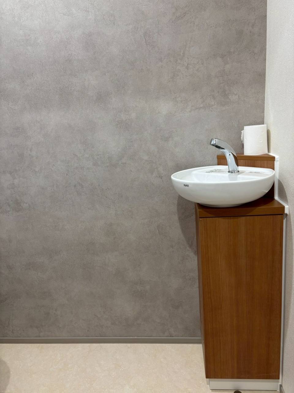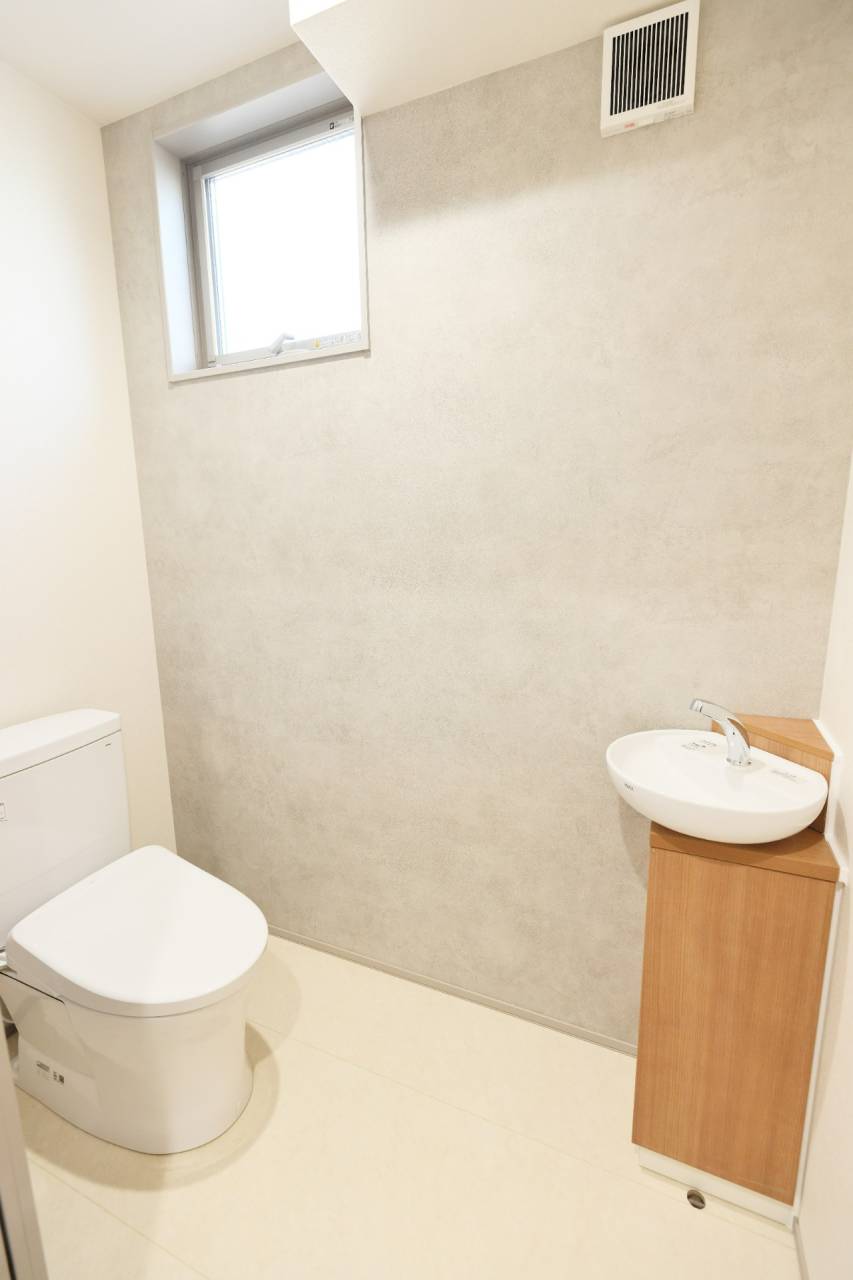 手洗い付きグレー壁紙クロストイレ 習志野市